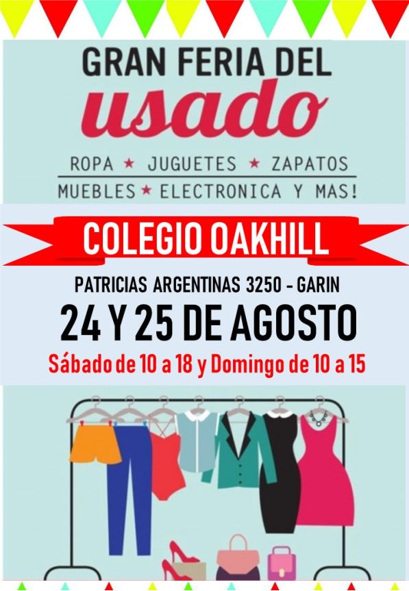 Nueva fecha para la feria del usado en el Colegio Oakhill, próximos 24 y 25 de agosto de 9 a 18 hs.