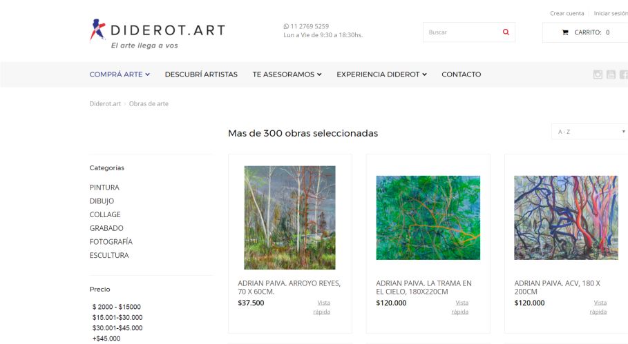 Nace Diderot.Art (www.diderot.art), el primer e-commerce de arte contemporáneo argentino previamente seleccionado por una curadora. El público podrá acceder a la obra de argentinos emergentes, de carrera media y consagrados, desde la comodidad de una computadora, en cualquier momento y lugar, las 24 horas, los siete días de la semana. Además, el sitio ofrece opciones de financiación, diferentes medios de pago online, envíos a todo el país y asesoramiento gratuito, entre otros beneficios.