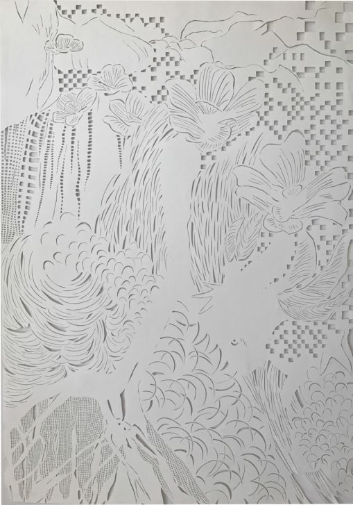 Gisela Cortese, papel calado a mano de 100 x 130 cm