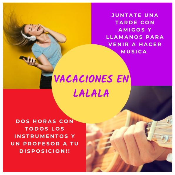 Desde la escuela de canto LALALA que está en el 1 er piso de Paseo Pilar, ofrecen para estas vacaciones clases de 2 horas de música!!!