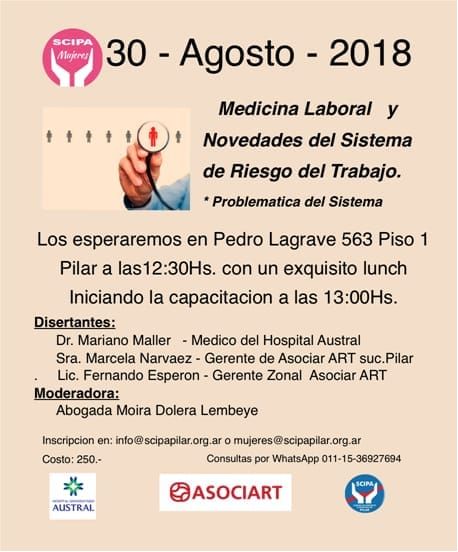 Inscripciones: info@scipapilar.org.ar o mujeres@scipapilar.org.ar