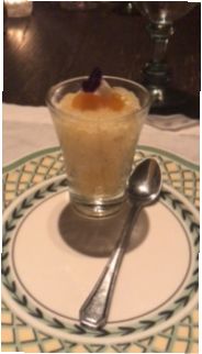 Fuimos a comer una noche a La Bourgone donde si bien si comida es de origen francés tiene una marcada influencia de productos locales que enriquecen la propuesta como la mandioca, el Suribí y distintas verduras y frutas locales.  En las fotos: surubí a las hierbas y granité de mango.